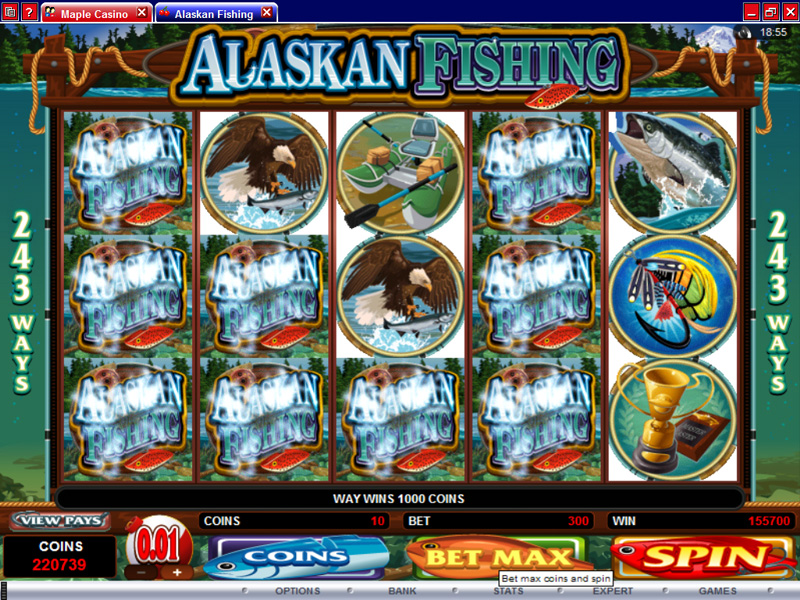 Alaskan Fishing is my favorite MicroGaming video slot, mostly because it has given me the biggest wins, but it can be rough when it’s cold. It features 243 win lines, stacked wilds on all reels, 15 free spins with a x3 multiplier, and a Fly Fishing Bonus round.