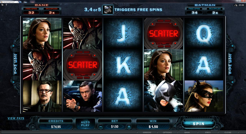 The Dark Knight Rises is a new online slot from Microgaming. This is the second slot in The Dark Knight series, featuring images and scenes from the movie, and it is quite a bit different than the first one.