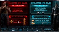 The Dark Knight Rises features the same 243 ways to win, but there are no progressive jackpots, and no other real similarities. There are wild symbols on every reel, with an added expanding wild symbol on the third reel. There are two different free spins bonus features to start with, and two that will be unlocked after triggering the feature 10 times. Once unlocked, there are two types of Batman Free Spins and two types of Bane Free Spins.